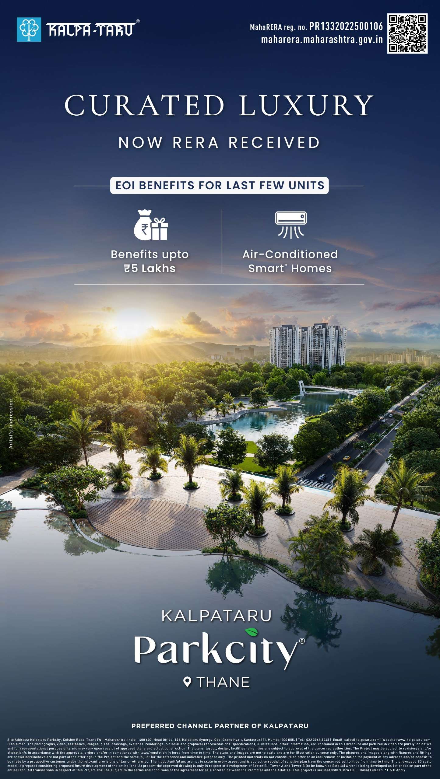 Kalpataru Parkcity is a premium 100+ acre integrated township located on Kolshet Road, Thane, offering a future-ready lifestyle surrounded by expansive green spaces and world-class infrastructure. With over 20+ acres of the iconic Grand Central NaMo Park and more than 4,500 trees across the township, residents enjoy a perfect balance of urban convenience and natural serenity. Home to 1,600+ happy families, Kalpataru Parkcity features thoughtfully designed 2, 3 & 4 BHK residences with modern planning and premium living standards. The township reflects meticulous planning, sustainable development, and seamless connectivity, making it one of the most desirable residential destinations in Thane. With exclusive Home Fest offers, flexible payment plans, and transparent pricing, Kalpataru Parkcity truly delivers endless possibilities for modern families.